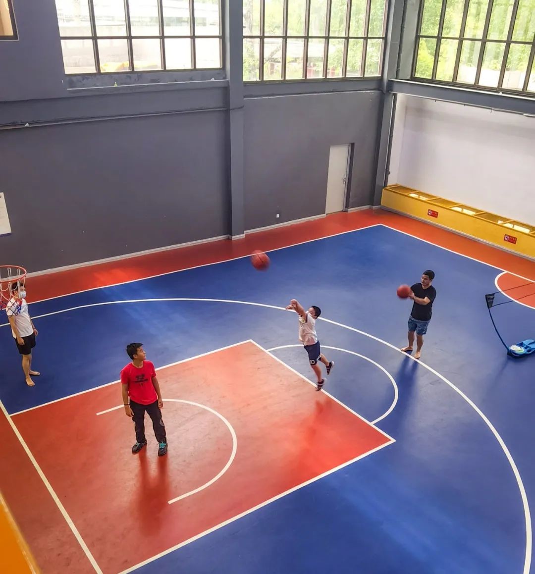 打篮球,室内这场地质量和球的手感不错,我很久没摸过球的,都还能投进一些进球,也是小露了一手,哈哈。