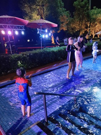 因为我们回深圳的车要晚点,下午5点多。在陆续送走家人后,我们在度假村吃完午饭,陪叮当在泳池玩了两个小时,也要离开了。