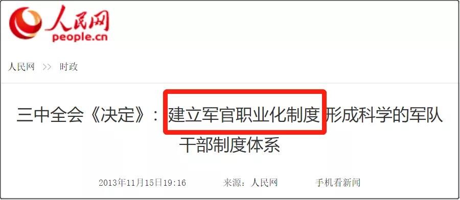 军官职业化,将带来军官等级制度的调整重塑,也意味着军官分类管理、服役、职业发展管理、待遇保障等制度的创新完善!