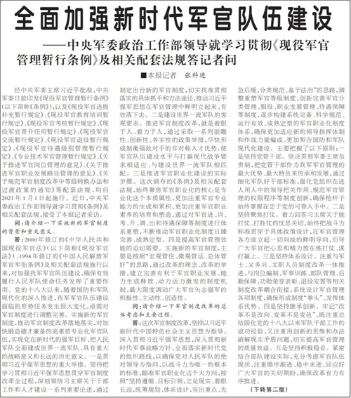 它们的印发施行,确立了军官职业化制度的“1+11”的政策规定格局。