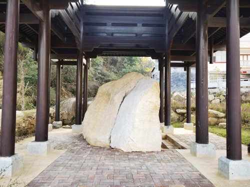 巨石边就是禹溪,溪旁以前有石壁,上世纪七八十年代谭家山煤矿采石将石头采光了解,采石留下的痕迹还历历在目。如此说来,确实位于“壁间”。