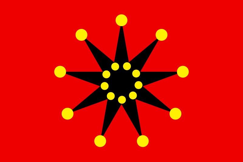 铁血十八星旗,简称十八星旗,又称铁血旗、九角旗、九角十八星旗,是武昌起义后中华民国湖北军政府宣告成立时所采用的旗帜。原是湖北革命团体共进会的会旗。1907年8月间,焦达峰、刘公、孙武等一批在日本的同盟会会员筹组共进会,议定以十八星旗为会旗。1911年9月,在同盟会推动下策划武昌起义。文学社和共进会召开联席会议,组成领导起义的总指挥部,定十八星旗为旗帜。10月11日,中华民国军政府鄂军都督府(俗称湖北军政府)宣告成立,十八星旗为其旗帜。1912年1月10日,中华民国临时参议院通过专门决议,以五族共和旗(简称五色旗)为中国国旗。以十八星旗为陆军旗。