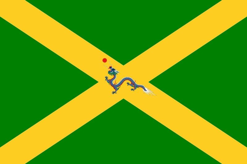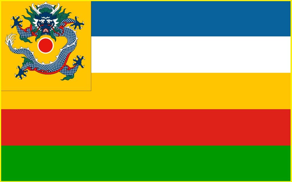 然而清政府并没有直接采用这套方案,而是修订了先前衔别旗的色彩,将锚型替换为团龙,于1890年颁定新海军衔别旗。
