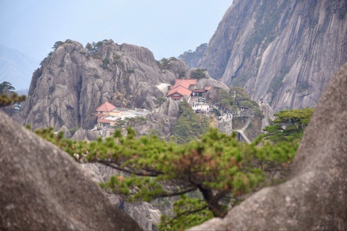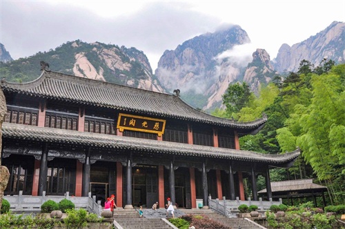 慈光阁,原为慈光寺,古称朱砂庵。始建于明朝嘉靖年间,万历年间普门和尚改名为法海禅院,名声渐大,传入宫廷,并于万历三十八年钦赐“护国慈光寺”。现为黄山前山登山入口,也是玉屏索道的入口。