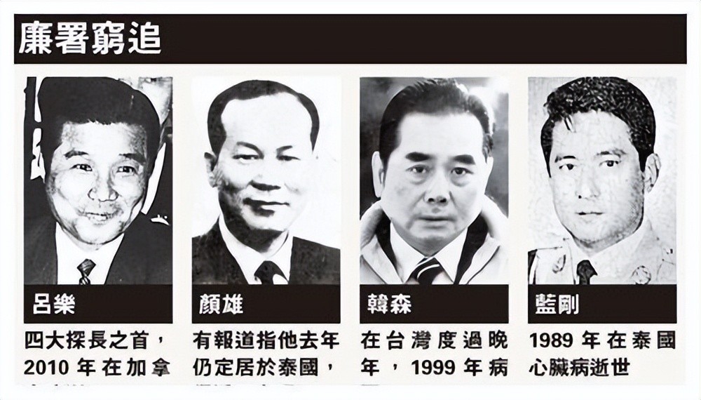 四大探长都被清理掉,他们四人的好日子到头了,抓的抓跑的跑。吕乐闻风而逃,遭到港府的通缉,从此再也不敢回香港,这个人就没了。