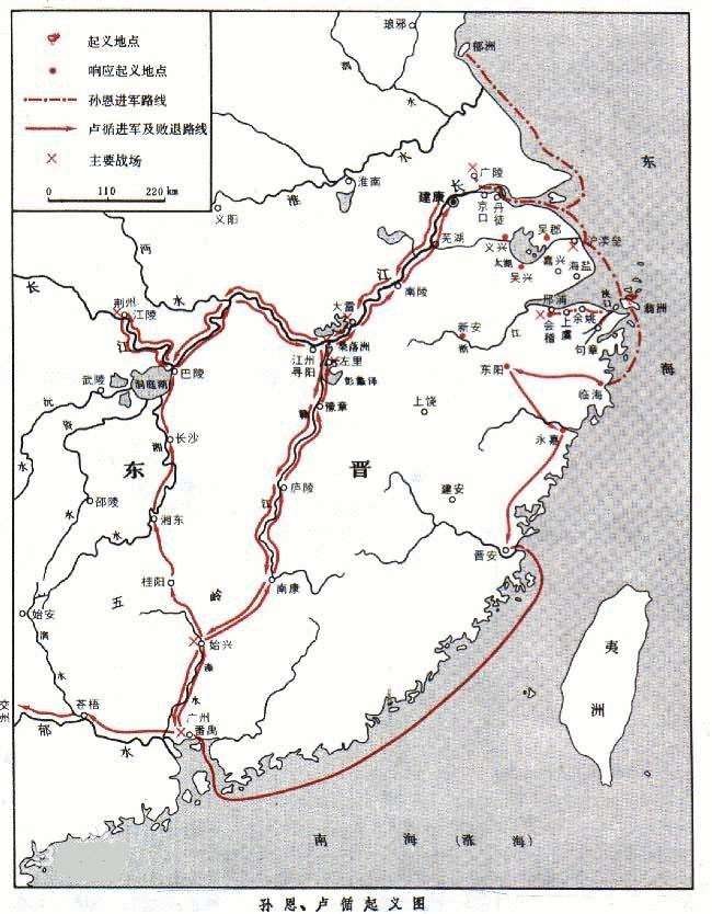 孙恩起事以后,主要的战场对手,一个是以徐州刺史督吴兴、义兴两郡军事,后来又以会稽内史督五郡军事的谢琰,谢琰不久即被孙恩军杀死。