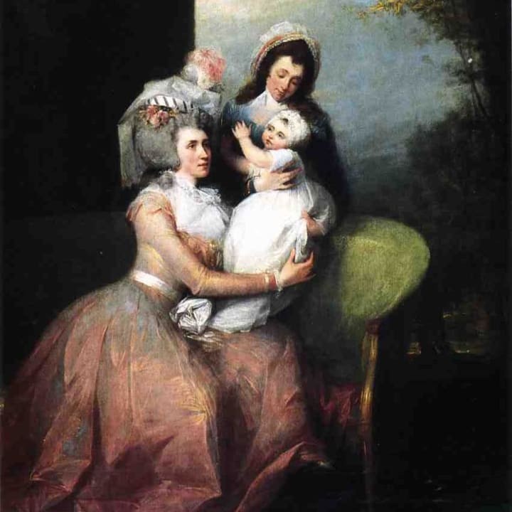 约翰·特朗布尔 (John Trumbull) 的约翰·巴克·丘奇夫人 (Angelica Schuyler)、儿子菲利普和仆人的肖像