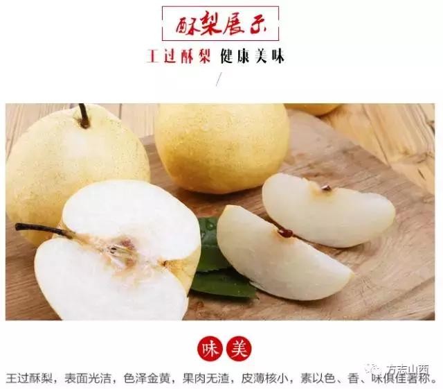 王过酥梨产于运城盐湖区王过村。由于“小气候”特殊,王过酥梨果实大,色泽金黄,皮薄,肉质细嫩洁白,汁多味甜,酥爽可口,为梨中上品。王过酥梨既是鲜食佳品,又是梨罐头、梨膏加工的上等原料,为国家农产品地理标志保护产品。盐湖区泓芝驿镇王过村、泓芝驿村、累德村、北店村、南店村、孙余村、董杜村、北古村、西古村、张半村、郭伴村和上郭乡的中陈村,共12个行政村被划定为地域保护范围。2016年,王过酥梨出口美国,王过酥梨产区获批省级出口食品农产品质量安全示范区。