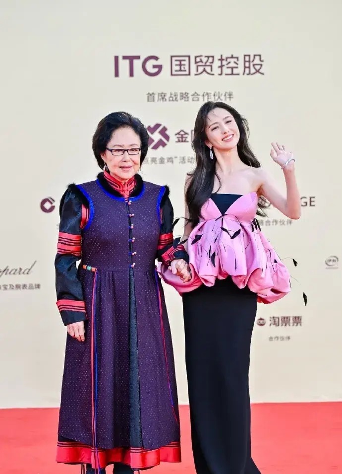 走上红毯的女星们仿佛展开了一场精彩绝伦的时尚大秀。赵丽颖身着一袭粉色纱裙,宛如盛开的娇艳花朵,裙摆随风飘动,宛如仙子下凡。那金色的亮片披肩更是点睛之笔,让她在柔美中透着一股子霸气,仿佛在向世人宣告:“谁说女二号就不能拿最佳女配角?”惠英红则大胆挑战了一身绿色绸缎礼服,那绿色如同春日里的嫩叶,充满了生机与活力。她还幽默地自称“惠英绿”,这一突发奇想的自我介绍瞬间让现场气氛活跃起来,让人不禁感叹这位老戏骨的幽默与松弛。佟丽娅携手斯琴高娃一同亮相,两人风格迥异,佟丽娅的西式晚礼裙充满了时尚感,尽情展现她的好身材,而斯琴高娃的蒙古特色服装则展现出独特的民族风情,仿佛带着我们穿越到了广袤的草原。