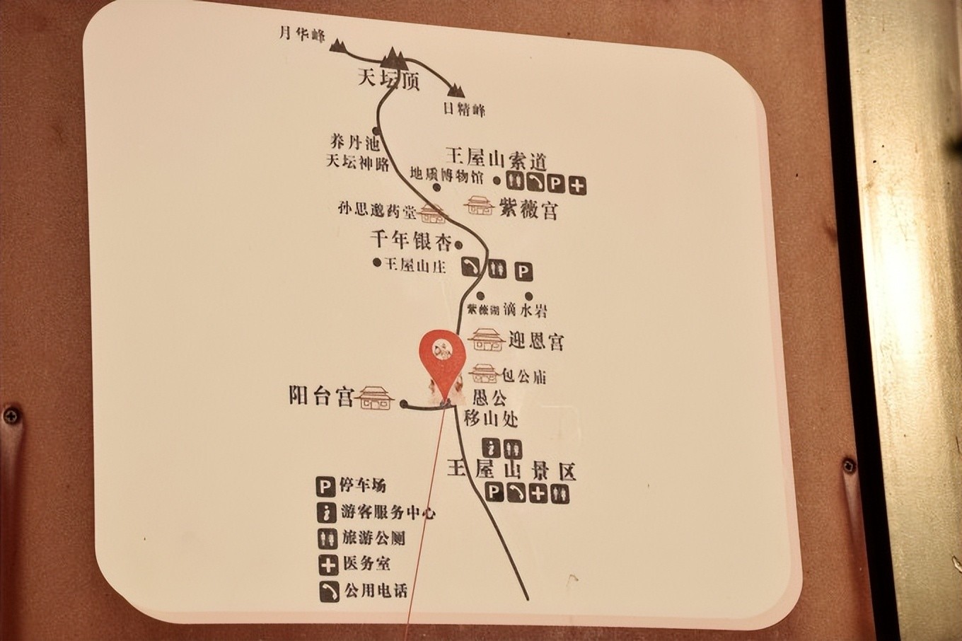 道境广场-----阳台宫-----愚公故居-----徒步或坐景区交通车-----不老泉-----天坛神道徒步或乘坐索道-----天坛峰-----徒步下山或滑道亦或乘坐索道下山-----徒步或景区交通车车-----愚公故居-----阳台宫-----道境广场