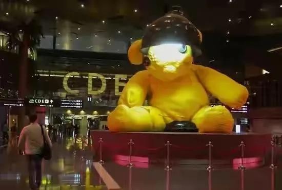 9,坐落于卡塔尔多哈哈马德国际机场的超大泰迪熊,高7米,由青铜铸成,重达20吨。是2011年在纽约的拍卖会上花了680万美元买来的。