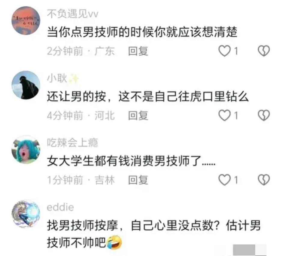 网友们议论纷纷,有人提出在按摩时应该“同性相吸”,即由男技师为男客户服务,女技师为女客户服务,认为这样更加安心。