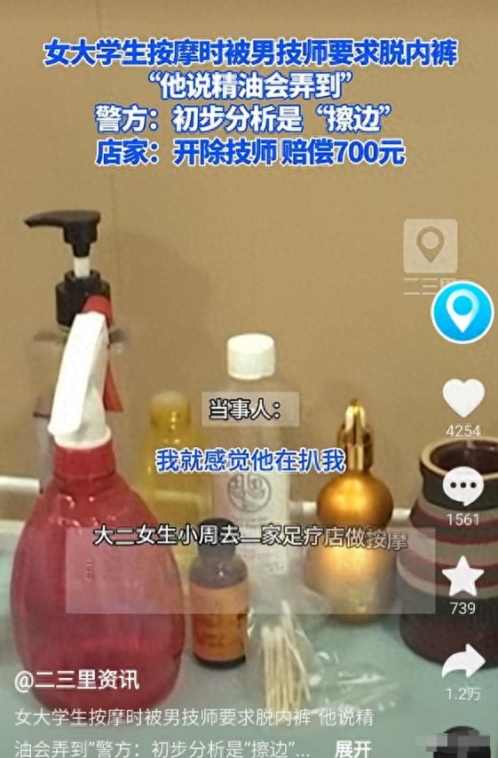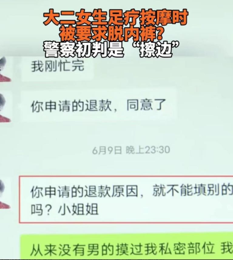 女大学生按摩遭男技师扒内裤,让她跪着背对男技师,警方确认擦边