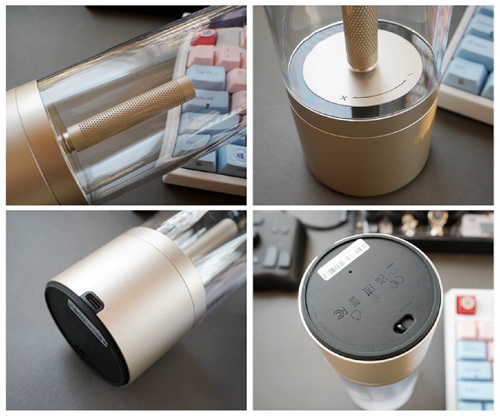 yeelight氛围灯整体设计感十分不错,金属烛台底座+黄铜镶孔灯芯设计,科技和复古实现了完美融合,颜值不可谓不高。yeelight氛围灯支持常亮和呼吸双模式,通过机身底部的开关可以实现模式的切换。yeelight氛围灯采用了内置充电电池设计,通过位于灯身背后的USB-C口可以实现充电操作。内置充电电池的设计可以轻松摆脱电线的束缚,需要yeelight氛围灯就可以轻松将它带去。内置2500mAh大容量电池,即使是最高亮度下也能实现长达9.5小时的持续点亮。