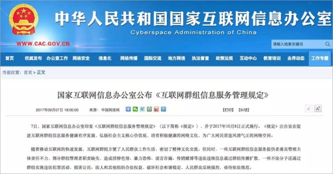 国家互联网信息办公室印发《互联网群组信息服务管理规定》(以下简称《规定》)要求,互联网群组建立者、管理者应当履行群组管理责任,即“谁建群谁负责”“谁管理谁负责”,规范群组网络行为和信息发布,群组成员在参与群组信息交流时,应当遵守相关法律法规,文明互动、理性表达。