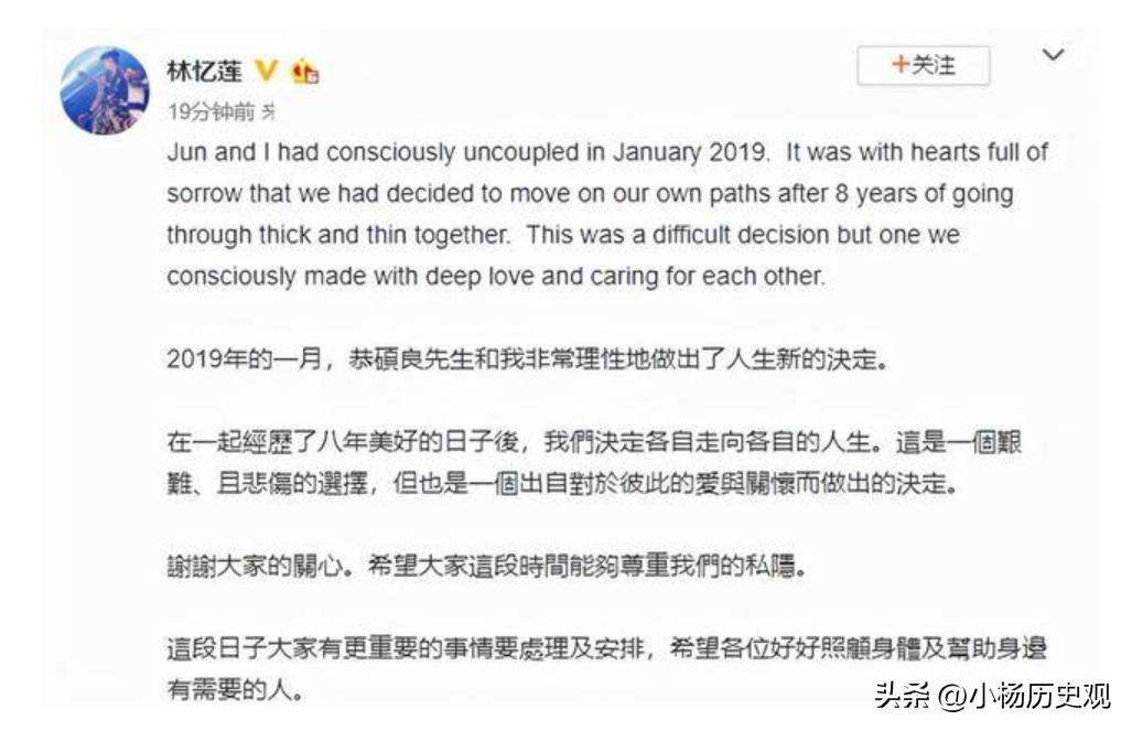 后来,林忆莲遇到了小自己11岁的乐队鼓手恭硕良,恭硕良年龄小会哄人,林忆莲跟他待在一起时总是面露笑意,虽然恭硕良很会哄林忆莲开心,但内心本质还是花心的,与林忆莲在一起的日子,花边新闻里总有他的身影出现。