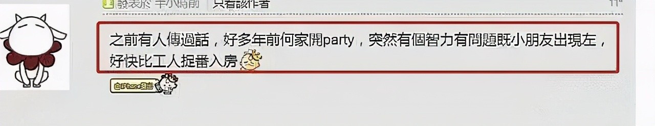 还有传言,多年前何家开派对时,不小心跑出来一个智力有问题的小孩,好在佣人眼疾手快,很快把孩子带进了房间。