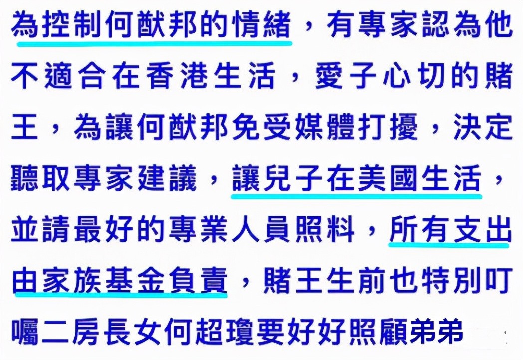 可能是为了争产,或者是在赌王晚年尽孝,这个孩子短暂回到何家,就又被送到国外,消失了踪迹。