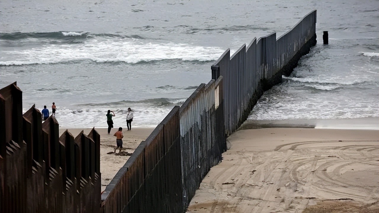 这是美国/墨西哥边界墙进入海洋的地方