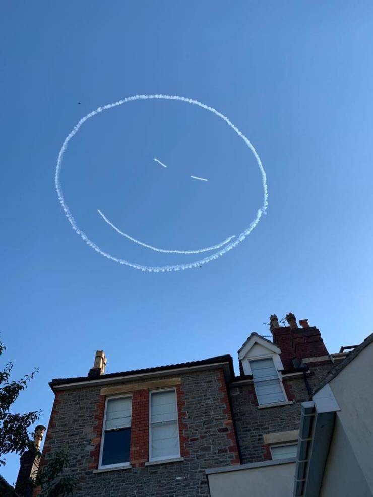 一名飞行员在天空画了一张笑脸