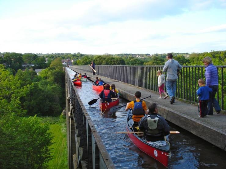 威尔士庞齐叙尔特渡槽是英国最长的渡槽,也是世界上供窄船和行人使用的最高运河渡槽。