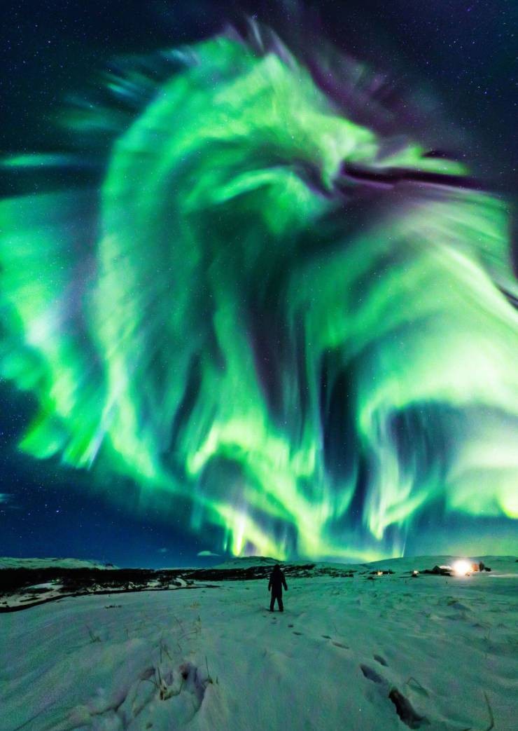 北极光的壮观照片看起来就像天空中的龙。