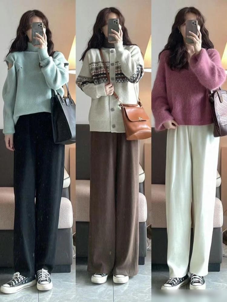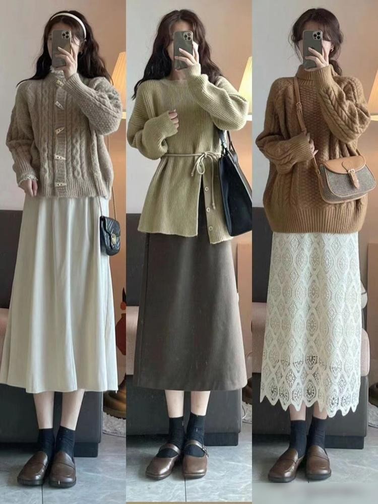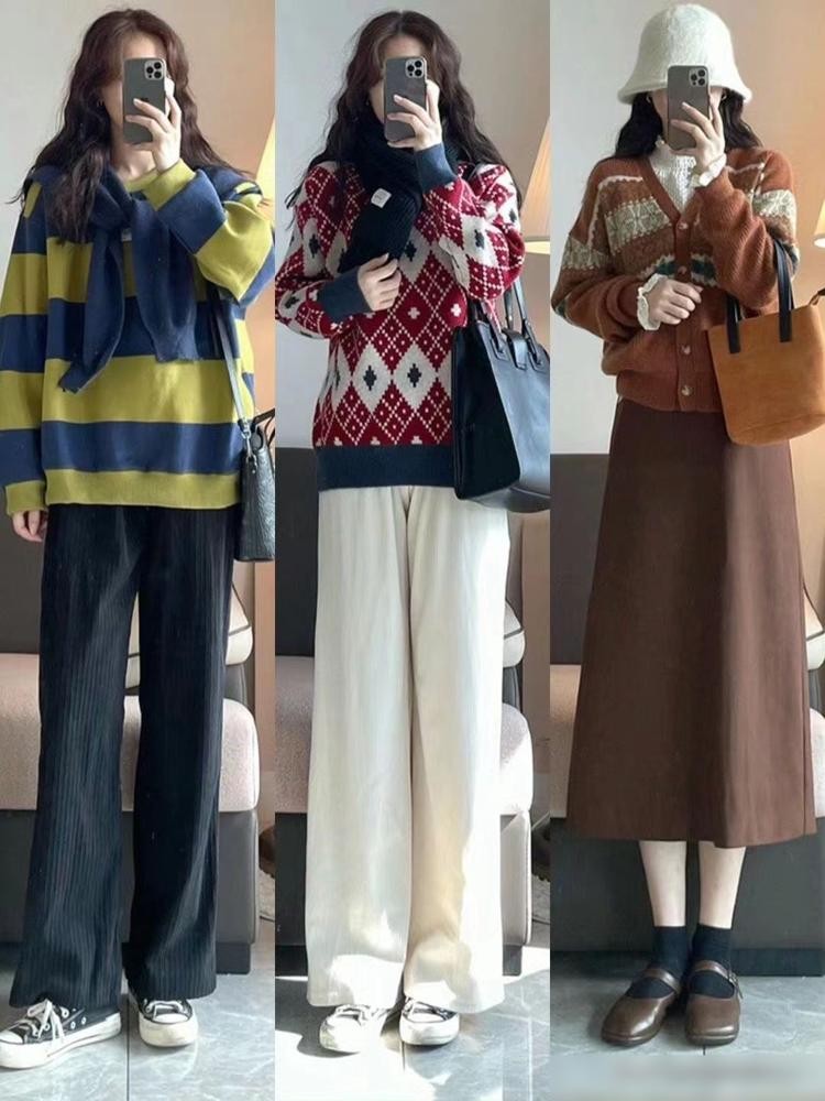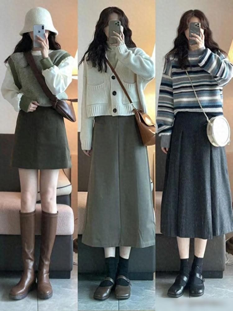 毛衣与半身裙与裤子的搭配。