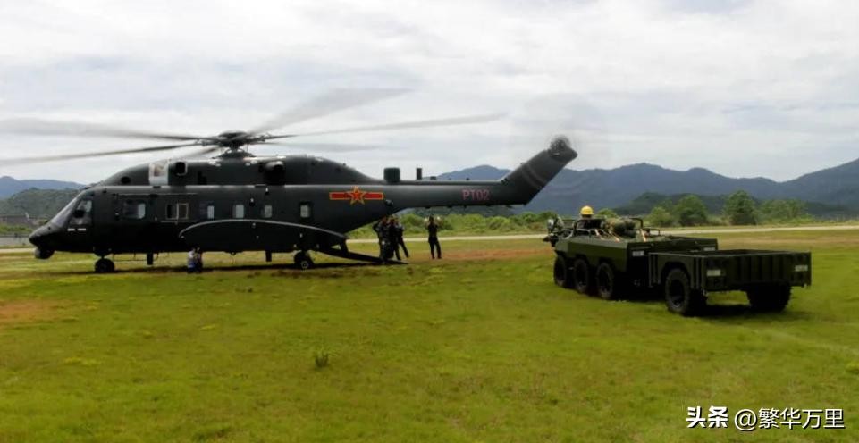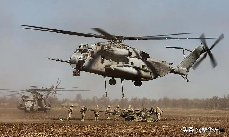 重型直升机不仅能够运输更多的作战官兵,还能运输伞兵战车、突击战车、轮式步兵战车、轮式榴弹炮等各种主战装备。能够把各种主战装备,运往地形复杂的山地或者高原区域。美国海军陆战队的CH53K重型直升机,是2019年才服役的新一代重型运输机。机舱最大运输能力13吨,外挂最大运输能力15.9吨,运输能力几乎是我国直8L直升机的3倍。