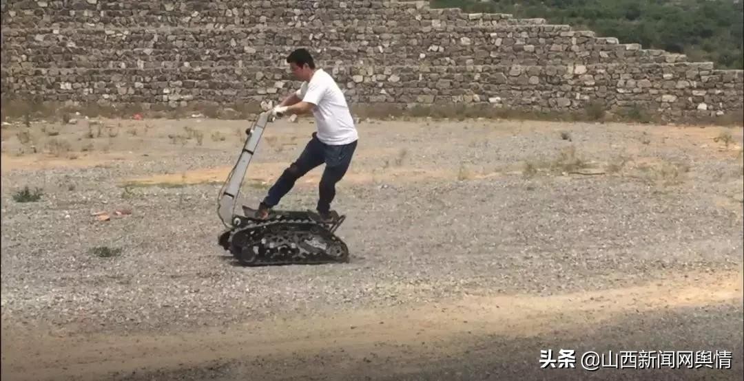 一手捧着火炬,一手拉着绳索,今年40岁的黄刚,在采火地西侯度遗址的梯田上跳跃:13层梯田,近70米的落差,他一气呵成。他是山西天龙救援队副总队长、搜救大队队长,也是一个救援器材“发明家”。