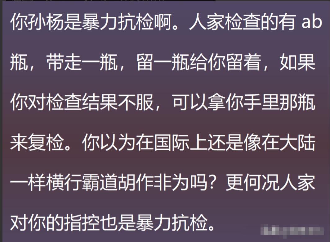 这让人们不禁联想到四年前因拒绝暴力检查而被禁赛的孙杨。