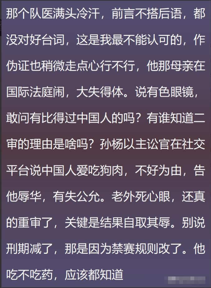 禁赛四年后,当初孙杨到底使用兴奋剂了没?网友的评论让我动摇了
