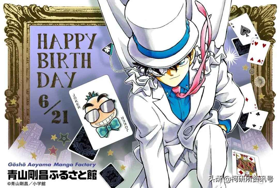 黑羽快斗(怪盗基德)作为《魔术快斗》的主角、名柯中的人气角色,他的生日也被广大柯迷所熟知。6月21日便是快斗的生日。至于来历嘛,是很值得一提的,就是我们亲爱的青山刚昌老师本人的生日!(果然快斗是亲儿子!)