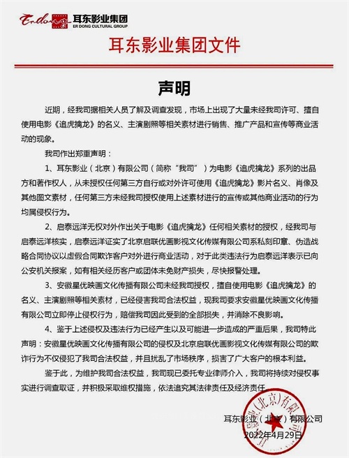 其次,耳东影业集团最近的一系列操作引发了更多的疑虑。公司频繁发布声明指控有其他公司冒充他们出售影视股权投资,这让人们对公司的管理和运营产生了质疑。一家正常运营的公司不应该容忍如此多的漏洞存在,更应该积极寻求法律保护自身的权益。而公司只是发表声明,而没有采取更有力的行动,这让人怀疑公司是否在尽力保护投资者的利益。