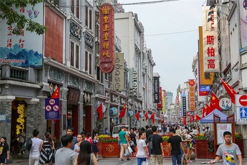 上下九步行街的标志性建筑是连绵千米的骑楼街,骑楼适应南方炎热多雨气候,可以挡避风雨侵袭,挡避炎阳照射,造成凉爽环境。