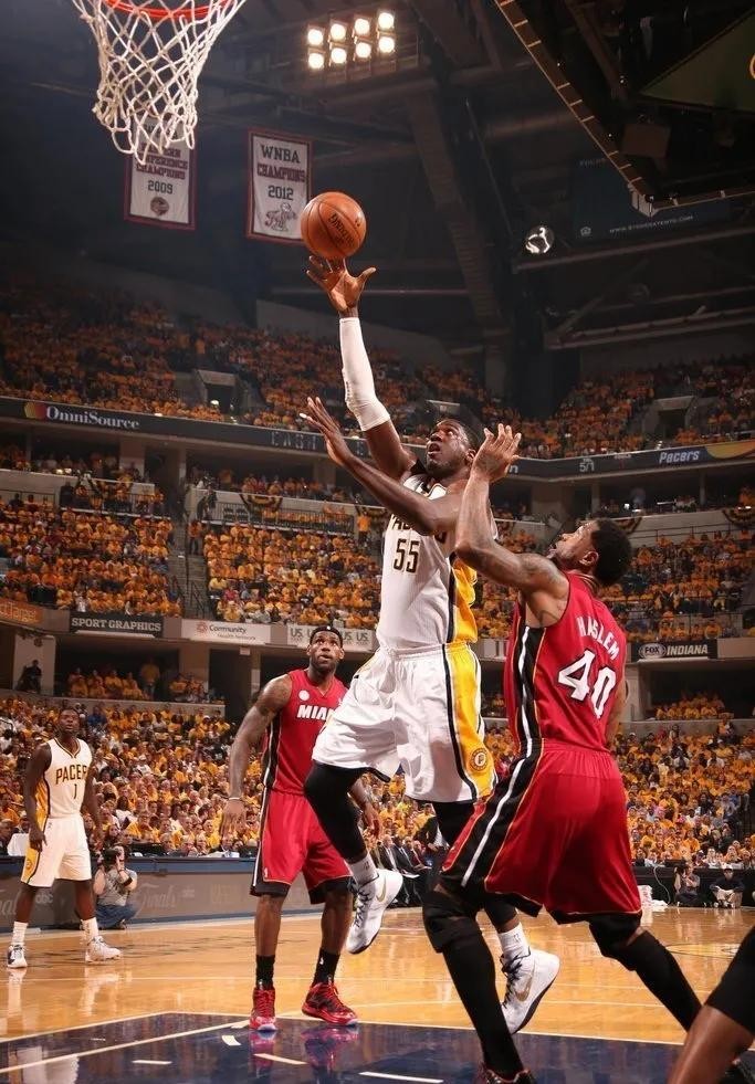 13-14赛季,经历上赛季的磨练步行者真正步入强队行列,也确立了保罗乔治的核心地位,希伯特虽然得分稍有下滑,场均贡献10.8分6.6篮板2.2盖帽,但是在防守端的影响力非常大,生涯首次入选最佳防守二阵,第二次入选全明星阵容,季后赛,步行者队再次在东部决赛碰到了热火队,虽然依旧打的火花四溅,但是终究还是2:4不敌,连续第二年东部决赛出局。