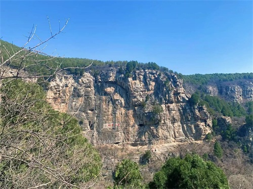 从"黑峪"到"一线天"的路多在谷底,树木很多,但并不粗壮,也不参天,它们起初是鸟带来的吧,或在谷底、或在崖壁、或在石缝,它们活了下来,而且活出了自己的性格。阳光落在峭壁上,金黄是它现在的颜色。大大小小的石头在脚下默不作声。