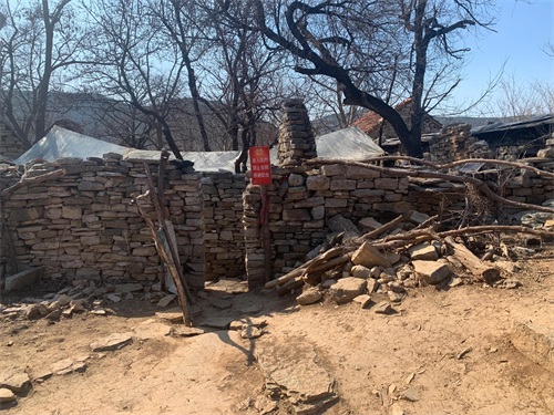 人工铺设的道路,远不如山路好走,繁多的台阶对膝盖并不友好。台阶走到尽头,再右转数步,几座石头垒砌的房子出现,几声咩咩的羊叫声传入耳膜,该是“黑峪大饭店”了吧?是的。据说这里的物资都是一头小黑驴驮来的,它真伟大。我们已经吃过饭了,就没有在这里吃这里驴友们盛赞的面条。