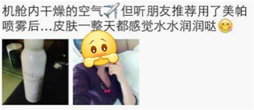 最近在空乘圈内美帕b5喷雾的呼声很高,空姐们因为不定期的各种航班,持续带妆飞行加上机舱气压低以及空调干闷的原因,爆皮是常有的事情,所以补水是头等的大事。