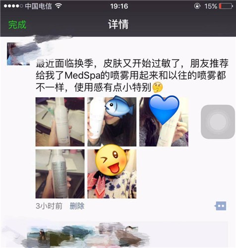 大多数的肌肤困扰都是源于肌肤的水油不平衡,导致红肿长小疙瘩等。MedSPA美帕的B5修复喷雾是全球第一款修复喷雾,在换季的时候特别需要,因为在换季的时候许多人皮肤都容易过敏。像空姐等长时间带妆的女生们更加要注意哦,若肌肤有了过敏症状,连续使用喷雾3天左右就可以舒缓过敏肌肤,过敏状况便可有效修复。