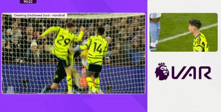 回放仅仅检查哈弗茨的进球,却不追溯哈弗茨首次触球后对方的手臂触球