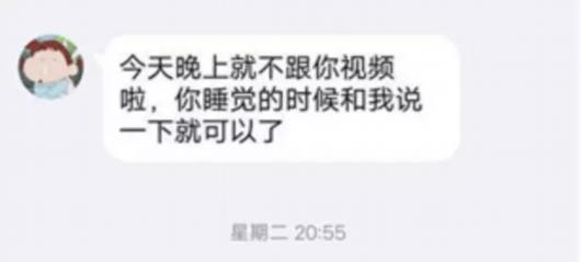 小张的男友小江告诉红星新闻记者,当天他一直和女友在QQ上有聊天。据其提供的聊天截图显示,14日18:16、18:23、19:23,小江给小张发消息,均收到回复。直到19:58,小张发来消息说,“今天晚上就不跟你视频啦,你睡觉的时候跟我说一下就可以了。”
