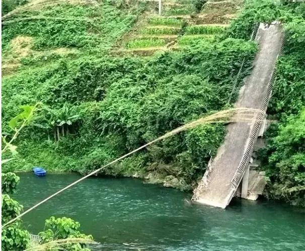 村民们行走在淘金大桥上(网络照片)。