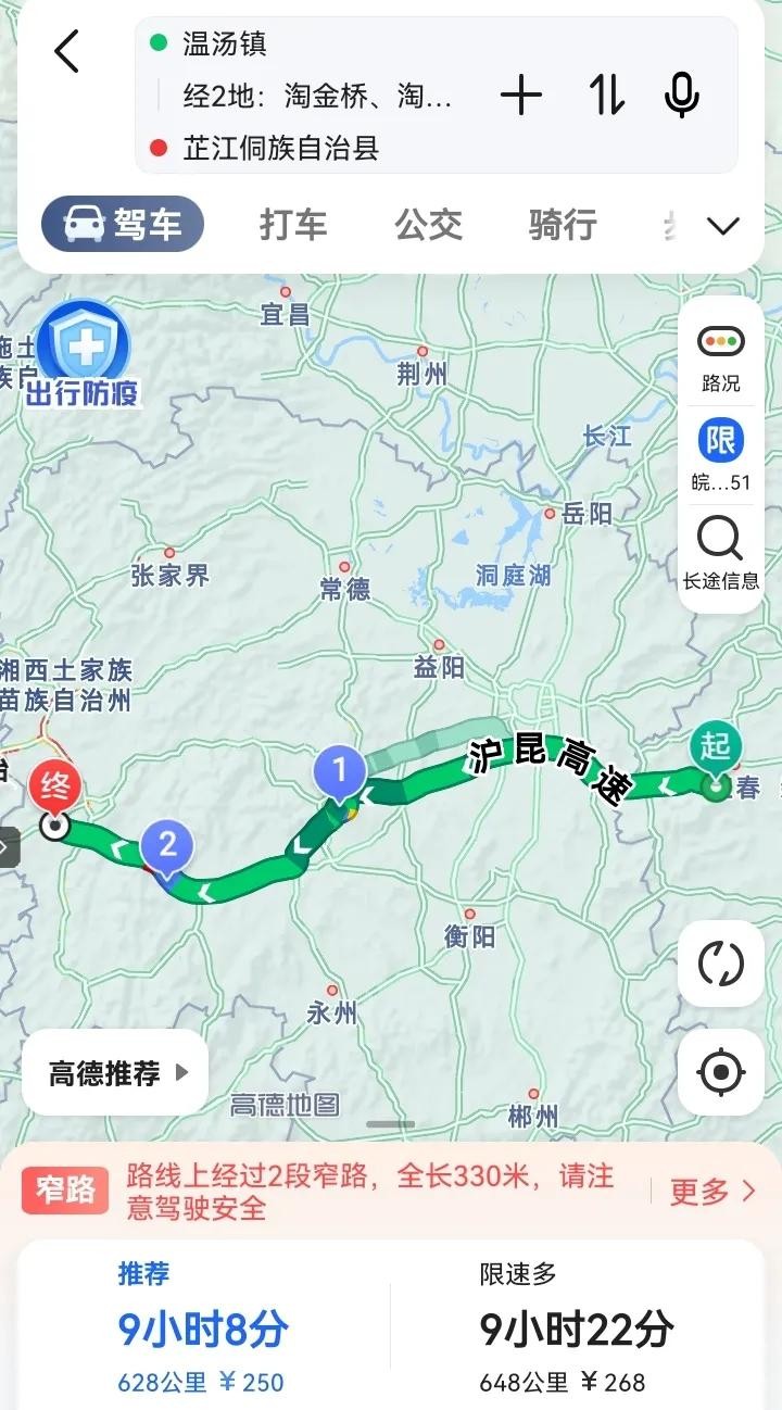 宜春温汤镇-新邵县淘金桥-洞口县淘金大桥-芷江行程路线。