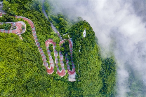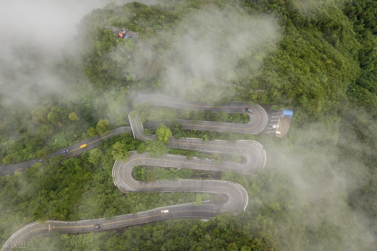 蜿蜒的盘山路曲曲折折,九曲十八弯,蜿蜒而上,七八公里的山路拐了将近15个弯。