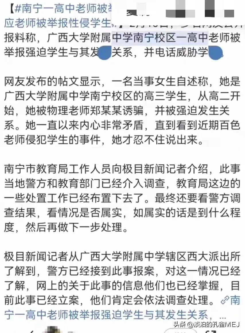 南宁一高中物理老师被举报性侵学生,网友:好几个女同学被盯上了