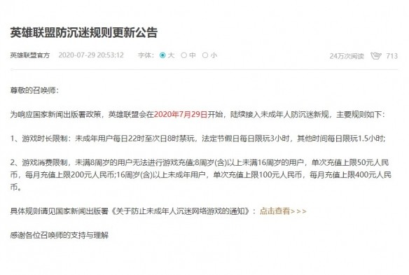 7月29日消息根据《英雄联盟》官方的消息,为响应国家新闻出版署政策,《英雄联盟》会在2020年7月29日开始,陆续接入未成年人防沉迷新规。