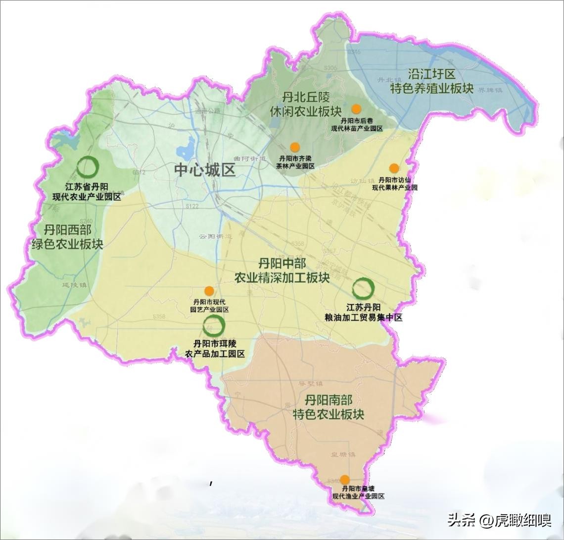 丹阳南部特色农业板块:依托丹阳市皇塘现代渔业园区等, 重点发展特种水产、 食用菌、 特色蔬菜等优势农业产业。