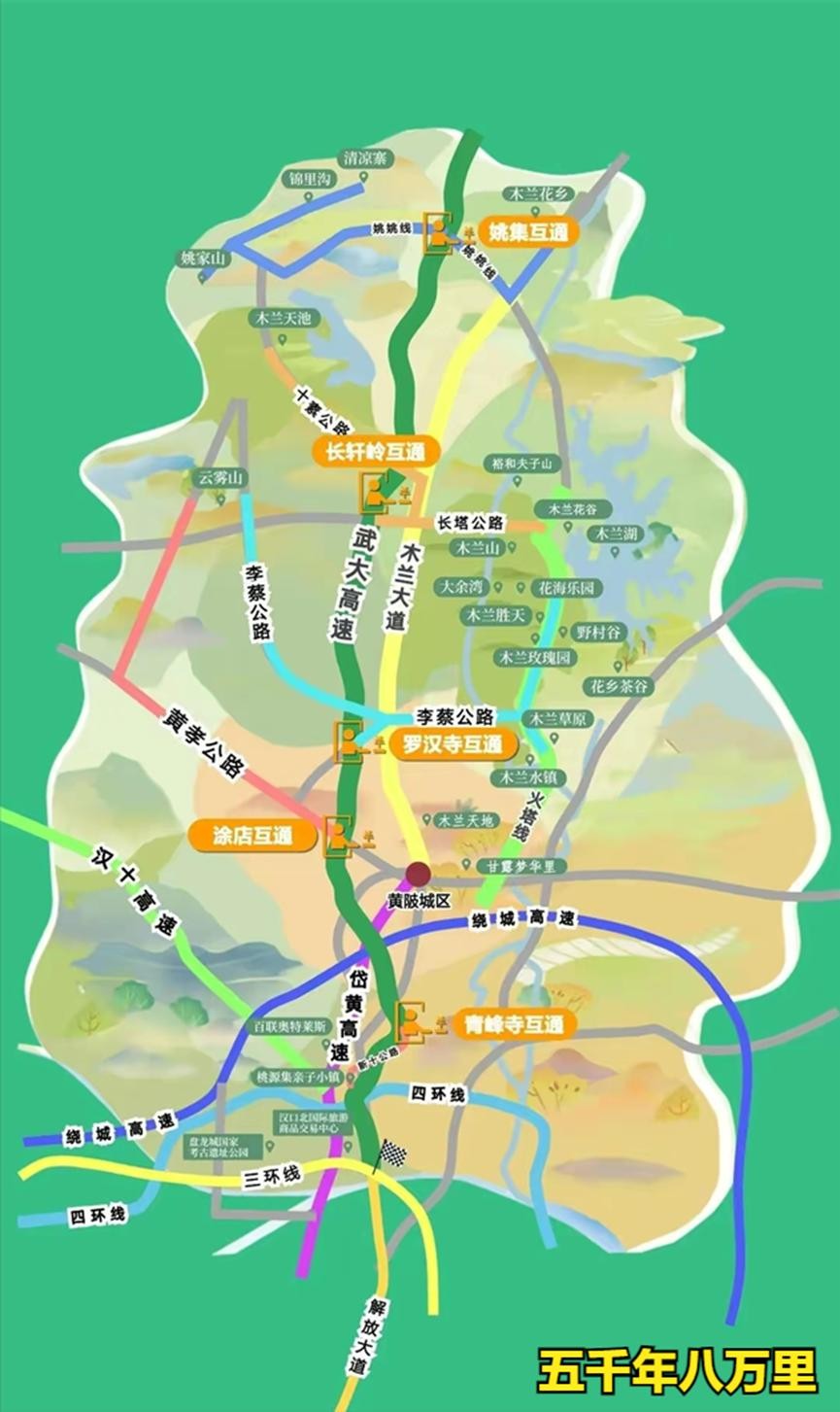 黄陂区旅游地图