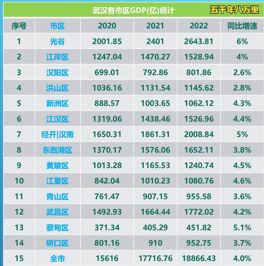 2022年武汉市各区GDP排名