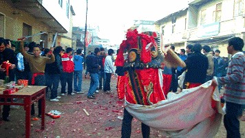将狮子的时候人山人海,万人空巷、交通拥堵、彩旗飘扬、鼓乐齐鸣、鞭炮震天、烟花绚烂,彩词助兴,巍巍壮观,欢呼声、呐喊声不绝于耳,人们沉浸在欢乐的海洋中。我比较了一下全国元宵节期间的舞狮、玩龙灯、花灯等传统民俗文化活动,没有比我们黄陂和孝感的将(僵)狮子更热闹更神秘更有吸引力的了。